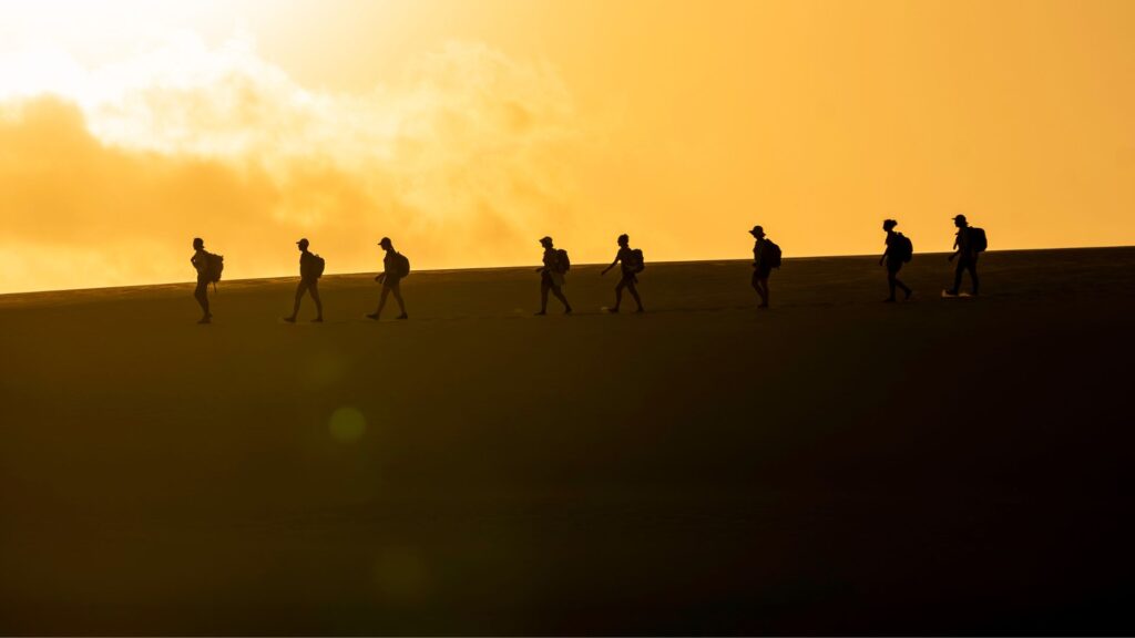 Ao longo do percurso, o grupo caminha entre dunas e lagoas, atravessa trechos marcantes do parque e vive pernoites em comunidades locais, o que amplia a experiência e traz mais profundidade para a jornada. Cada roteiro pode variar conforme o formato escolhido, o perfil do grupo e a proposta da experiência, mas a base da travessia é sempre a mesma: caminhar os Lençóis de forma autêntica, estruturada e consciente.